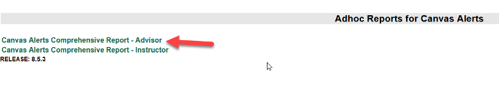 - Click on “Canvas Alerts Comprehensive Report – Advisor” to display the report.