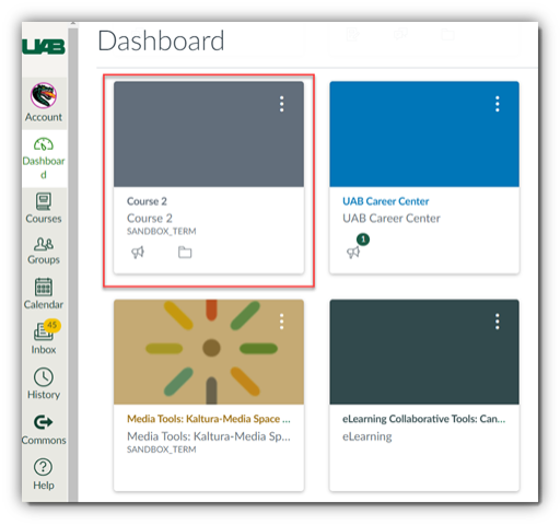 Instructors can access Harmonize within a Canvas course. To do so, go to your course list on the Canvas dashboard and select the course you would like to access Harmonize in.