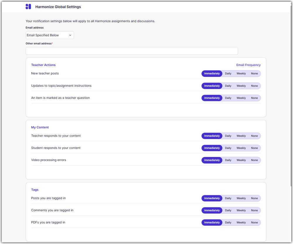 - This will take you to the Harmonize Global Settings page. From here you will be able to update your profile and notification settings opens a new website.