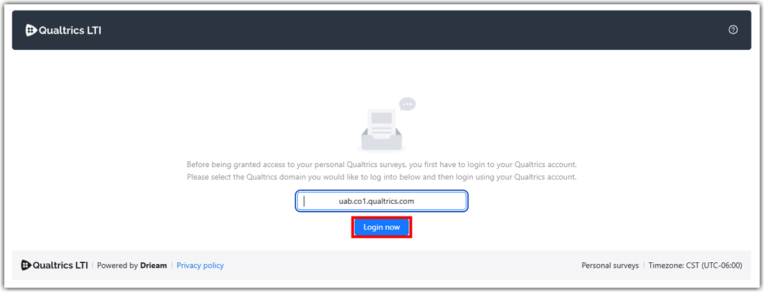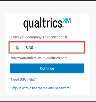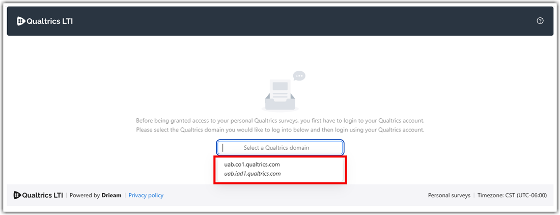 4. Click on the dropdown menu to select the UAB Qualtrics domain.
