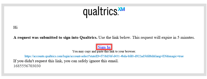 10. Go to your UAB email and locate the email sent by Qualtrics (the email subject is Login to Qualtrics). Click on the Sign In link in the email.