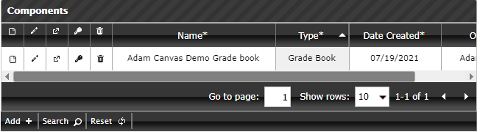 - Click Search to find your gradebook (NOTE: you may not need to do this step if you can see your Gradebook initially on the Components screen).