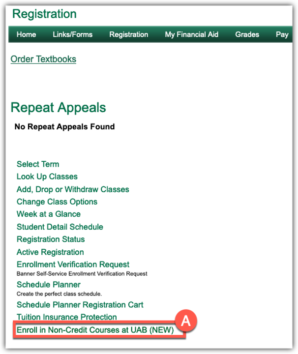 - Students, select Enroll in Non-Credit Courses at UAB, then skip to step 5.