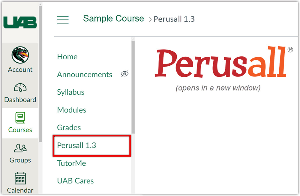 Students can access Perusall through the Course navigation link inside their Canvas course.