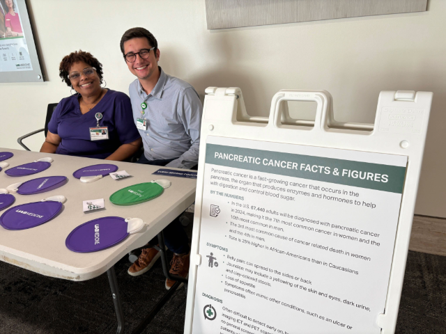On World Pancreatic Cancer Day, the UAB Pancreatobiliary Disease Center (PDC) hosted an awareness booth in The Kirklin Clinic (TKC), engaging patients, caregivers, and staff in meaningful conversations about one of the most lethal cancers affecting Alabama and the nation.