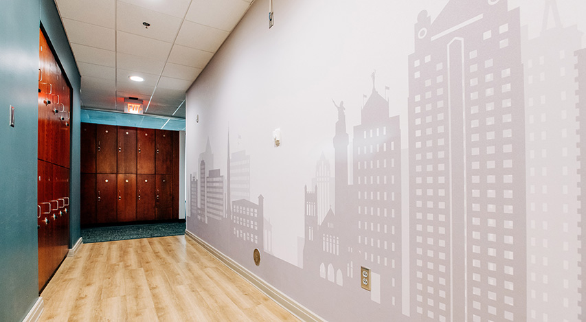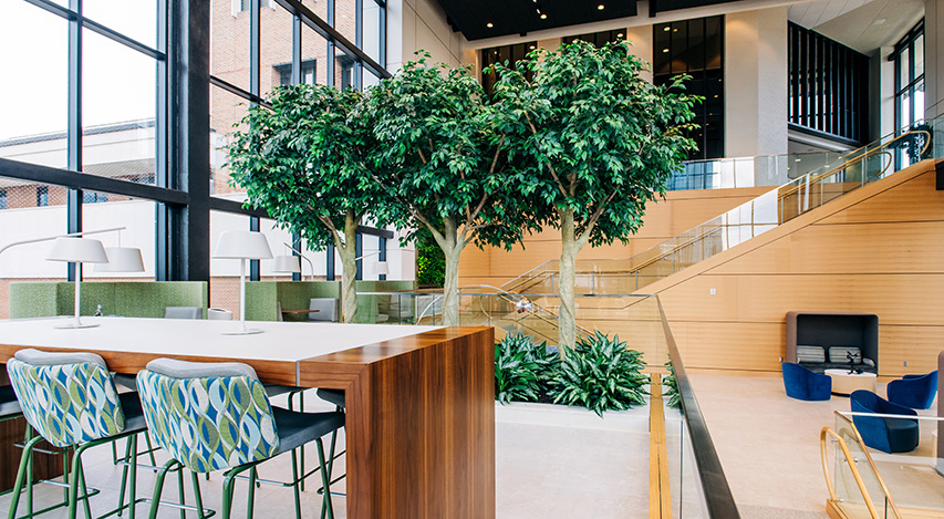 The interior of the atrium includes all-new furniture and light fixtures, providing students with new relaxation and study options. The space has been equipped with greenery, including a 24-foot-tall living plant wall. A custom chandelier was imported from Italy to give the area a unique aesthetic and ambiance. Morning Grounds, a new self-service coffee bar, was installed to serve the caffeine needs of Heersink School of Medicine faculty, staff and students.