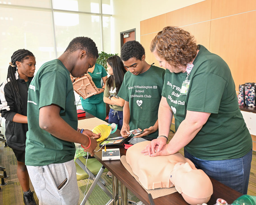 “Youth with Purpose” Health Clubs is an initiative of the National Association of Hispanic Nurses (NAHN), Alabama Chapter in collaboration with the UAB SON Office of Access and engagement, led by Dr. Grace Grau. This immersive experience reflects the shared commitment of NAHN, UAB SON, and community partners to cultivate the next generation of nurse leaders – grounded in compassion, culture, and care – for the communities they will one day serve.