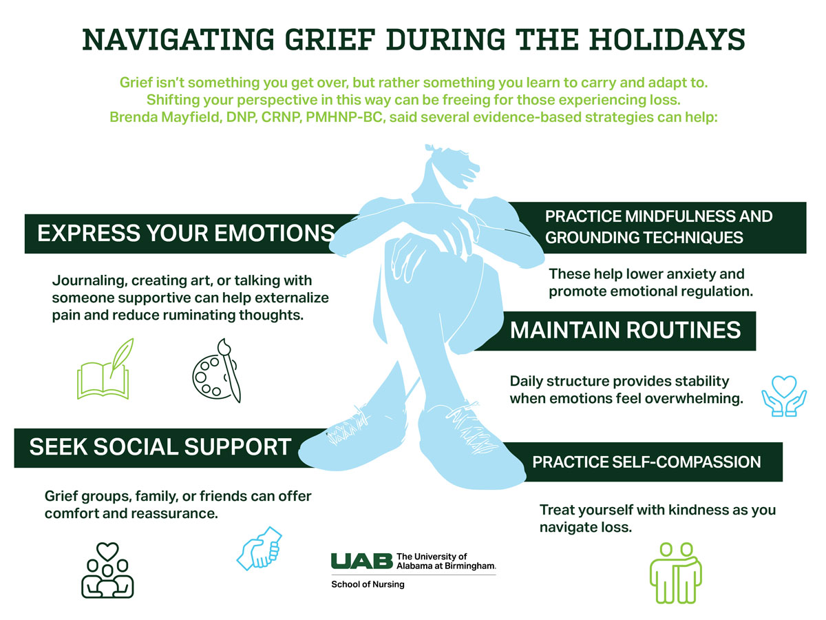 Brenda Mayfield, DNP, CRNP, PMHNP-BC (MSN 2018, DNP 2022), Assistant Professor at the University of Alabama at Birmingham School of Nursing and co-coordinator of the Psychiatric/Mental Health Nurse Practitioner Specialty, shares insight from her clinical experience supporting patients navigating the emotional challenges of grief.