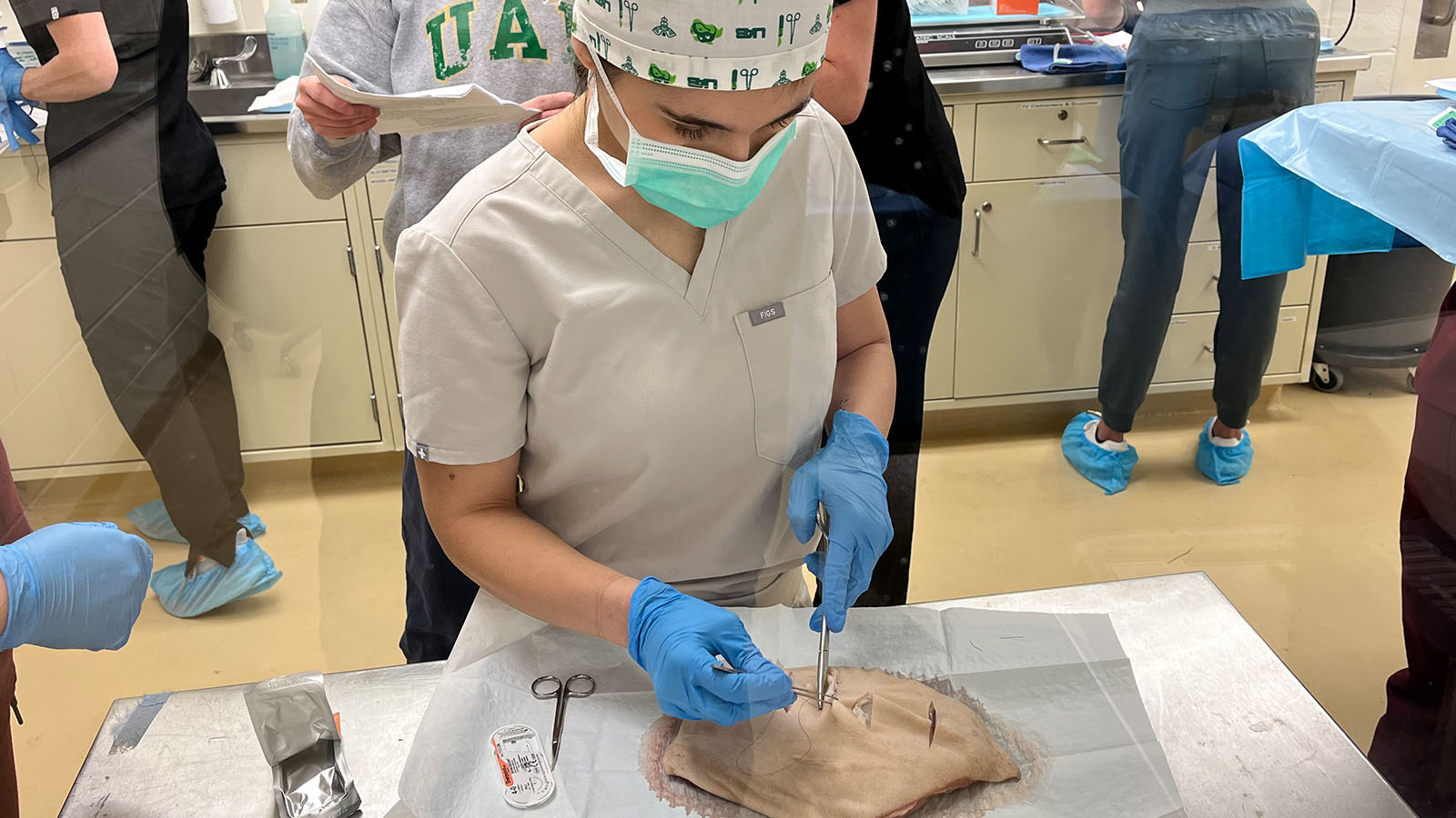 Includes hands-on instruction in surgical knot tying and suturing, performing minor surgeries under local anesthetic, vessel ligations, utilization of negative pressure wound therapy, and inserting central lines under ultrasound guidance.